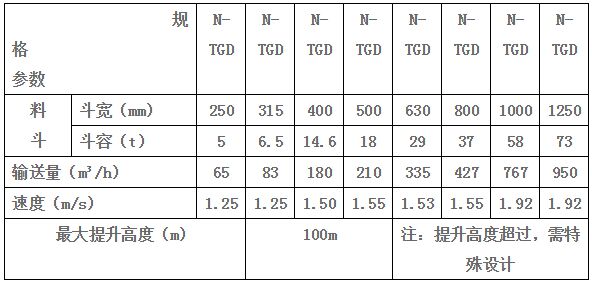 TGD型膠帶斗式提升機技術(shù)規(guī)格參數(shù):