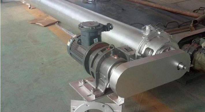 耐高溫水冷螺旋輸送機(jī)它包括筒體、帶螺旋板的轉(zhuǎn)軸、軸承和驅(qū)動(dòng)裝置,筒體外面有外冷卻水套,轉(zhuǎn)軸兩端為空管。螺旋板的空腔與轉(zhuǎn)軸兩端的空管連通,冷卻水由入端空管流經(jīng)螺旋板空腔后由出端空管流出形成內(nèi)冷卻水道。物料在輸送過程中冷卻較均勻冷卻效果好。